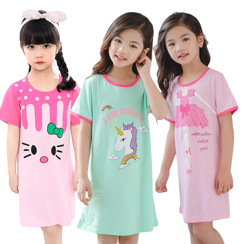 Летняя детская одежда для сна, халат, детское Хлопковое платье с коротким рукавом, модная пижама для девочек, юбка, ночная рубашка для девочек, большие размеры