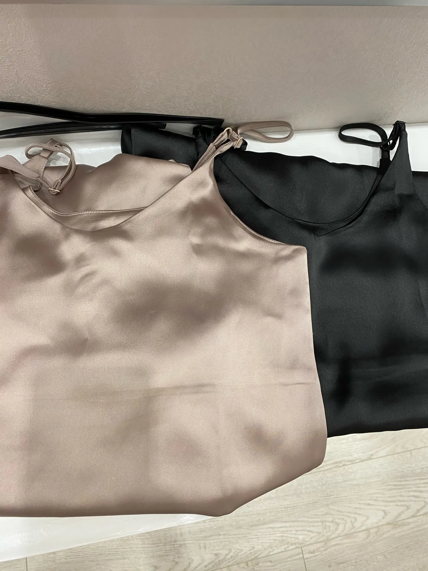 Платья заказывала в размере S на параметры 82-61-92 рост 164см, отлично смотрятся, и свободно и под пояс. Ткань приятная, струящаяся, плотный атлас, чёрный цвет неизменная классика., цвет шампанского шикарен)) Лямочки регулируются, это очень хорошо, в районе груди два слоя ткани. Сшито аккуратно, без изъянов! Доставка в срок, я очень довольна)) Спасибо!