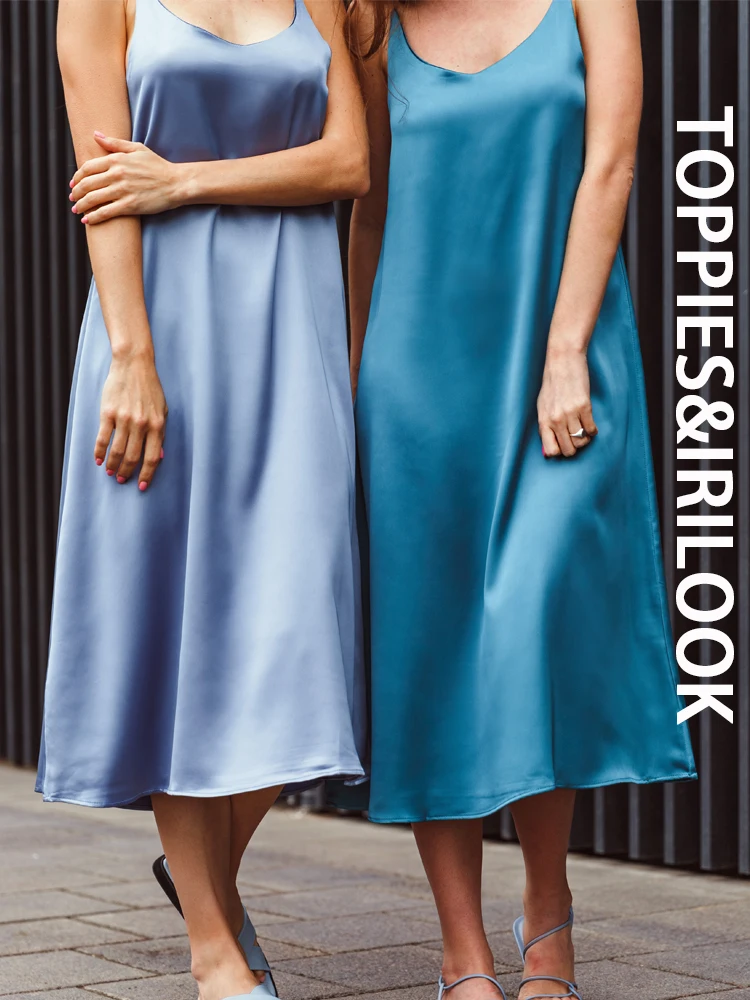 Toppies 2021 женское атласное платье с блестками длинное платье без рукавов сексуальная имитация шелка модная женская одежда