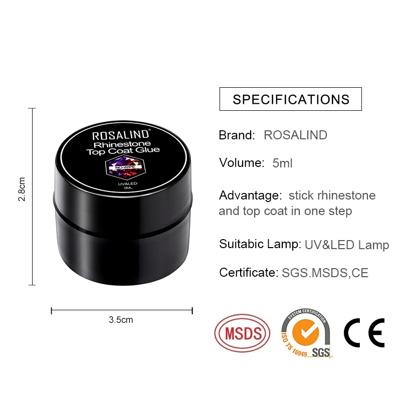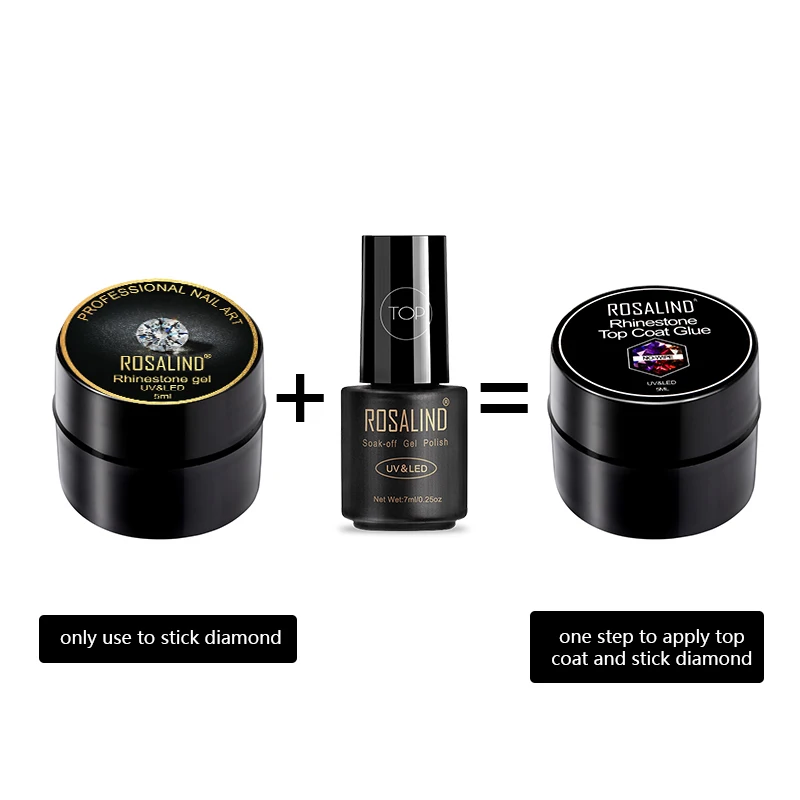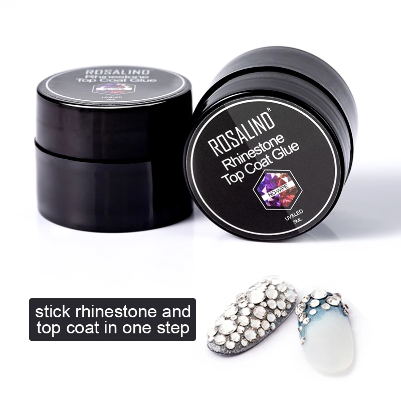 ROSALIND 2 в 1 верхнее покрытие клей стразы гель для ногтей 5 мл Лак для ногтей все для маникюра гибридные Стразы лак для ногтей