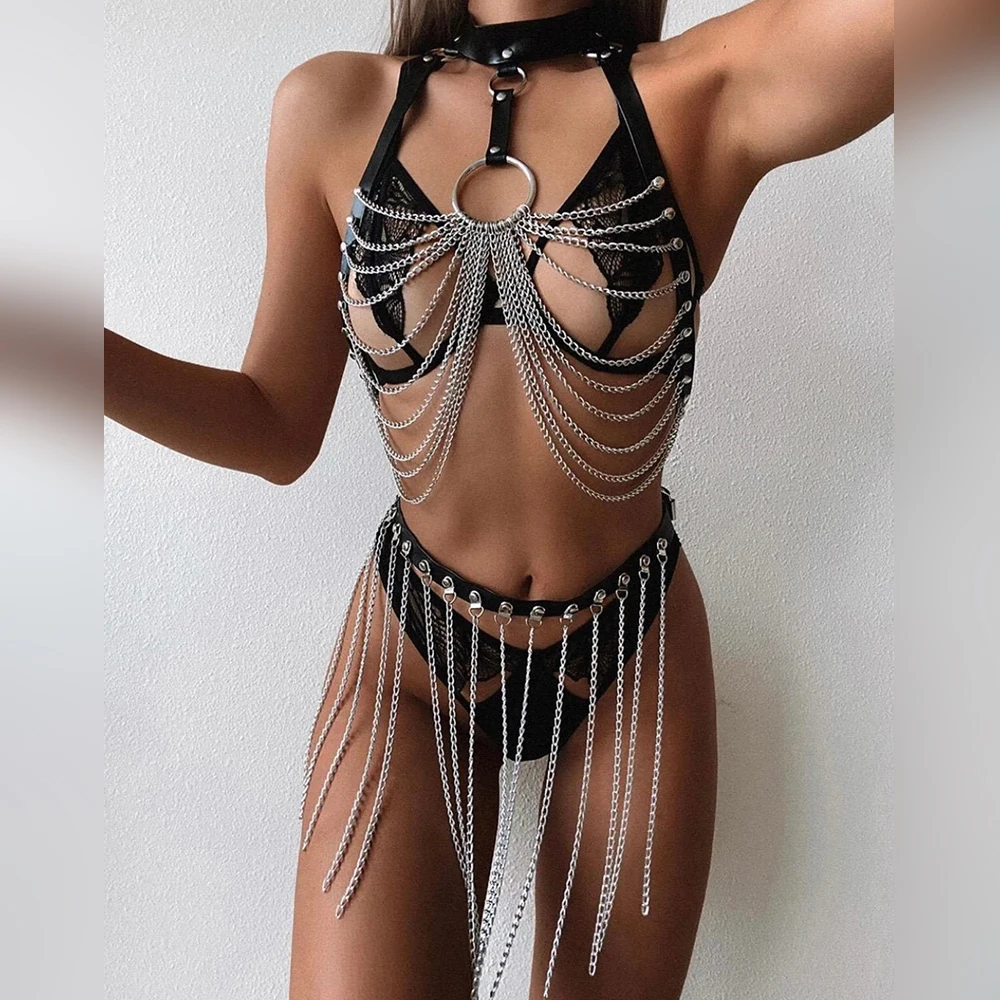 UYEE, кожаный ремень, нижнее белье, комплект из 2 предметов, ремни с подвязками, сексуальные женские ремни для связывания от талии и ног, бюстгальтер, подвязки, ремни для тела, грудь портупея чулки