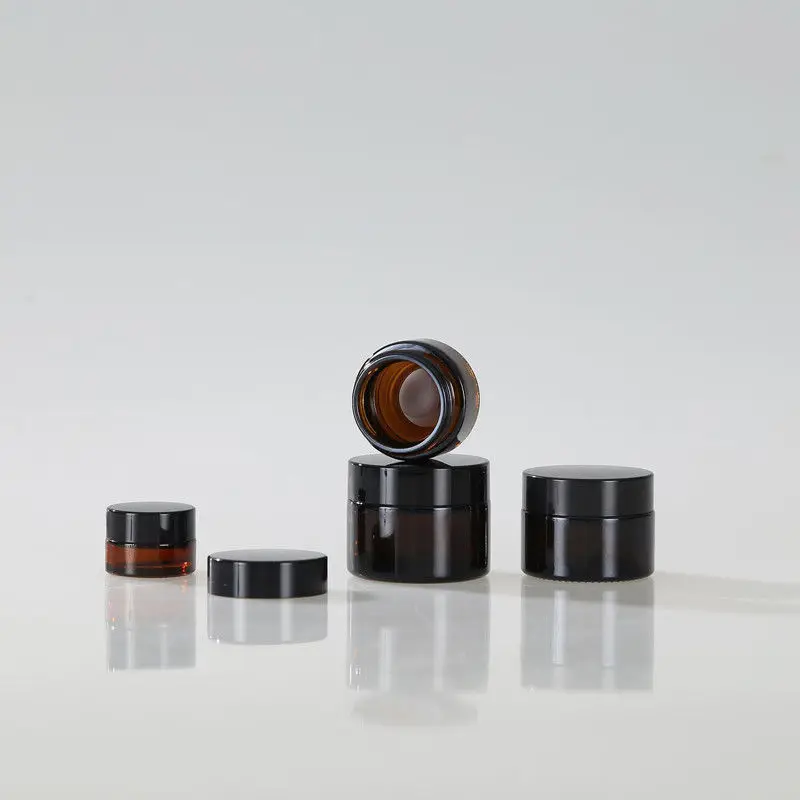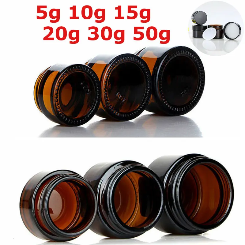 20 шт. х 5g-50 г Янтарный стеклянный контейнер, банки, коричневый горшок для косметического крема для лица, бальзама для губ, для домашнего использования с прокладкой