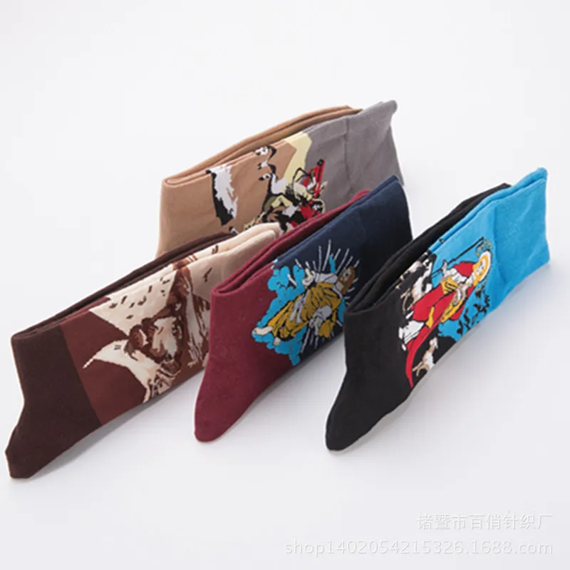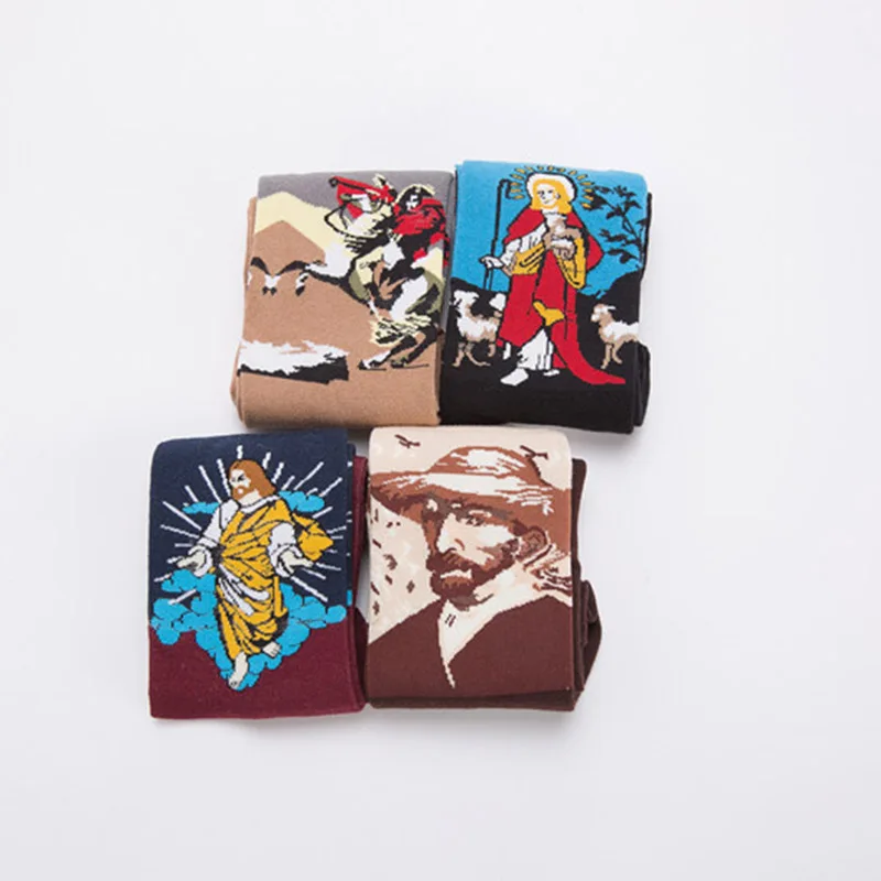 Носки мужские, с забавным рисунком Ван Гога, с принтом в стиле Ван Гога, с изображением Наполеона и Иисуса, лето счастливые мужские носки