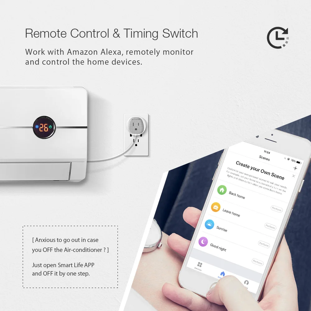 Умная розетка-это эффективный способ получить преимущества домашней автоматизации без затрат на преобразование каждого элемента в вашем доме в умное устройство. Вместо того, чтобы покупать новые смарт-устройства, преобразуйте тот, который вы уже владеете смарт-устройствами, просто подключив его к смарт-розетке. Чтобы вы могли легко и удобно управлять лампой, прибором или любым другим подключенным устройством.