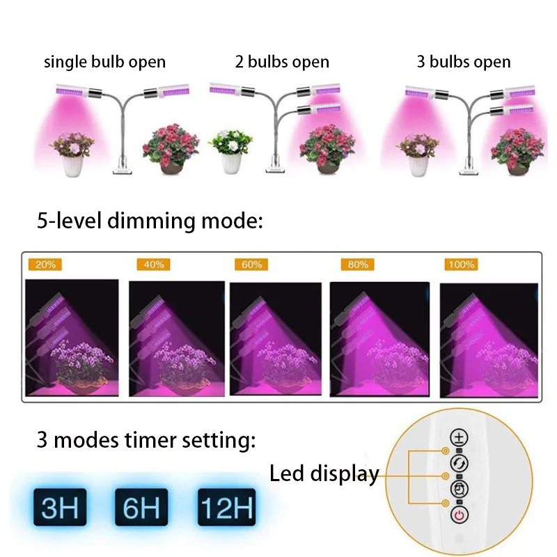 Светодиодный светильник с 3 головками для выращивания растений внутри помещений, лампы спектра для роста цветов, держатель для ламп Fitolampy, зажим для выращивания растений