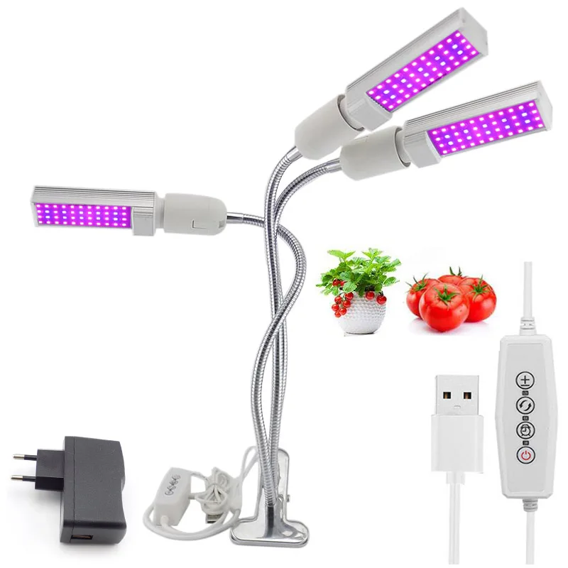 Полный спектр 44 Светодиодный светильник для выращивания фитолампа лампы Три головки растущие лампы USB таймер переключатель держатель зажим для роста светильник s для растений Гидропоника системы