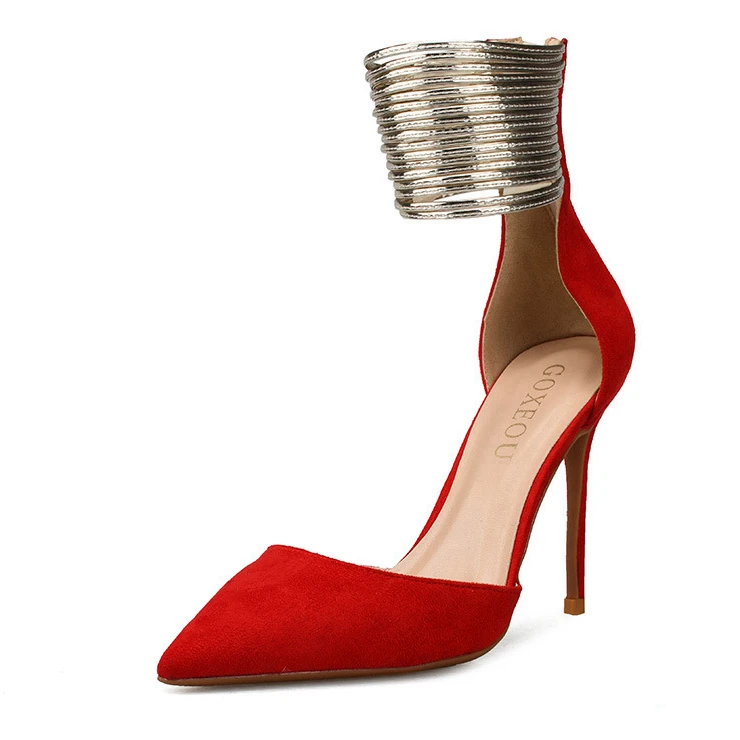 Женские босоножки с узким ремешком, летние красные босоножки, 2019, большой размер, H0061, туфли на высоком каблуке с ремешком на щиколотке