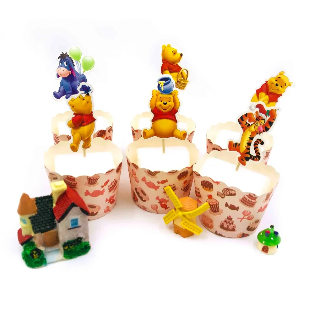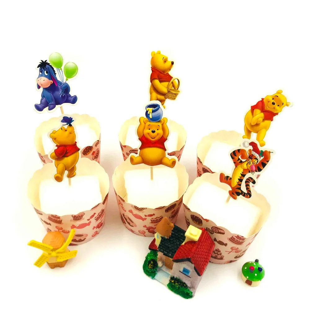 24 шт. Винни Медведь капкейк Топпер для торта День рождения палочка для торта для семейного дня рождения украшения для выпечки