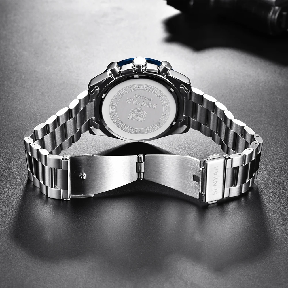 Мужские часы BENYAR, роскошные полностью стальные деловые кварцевые...
