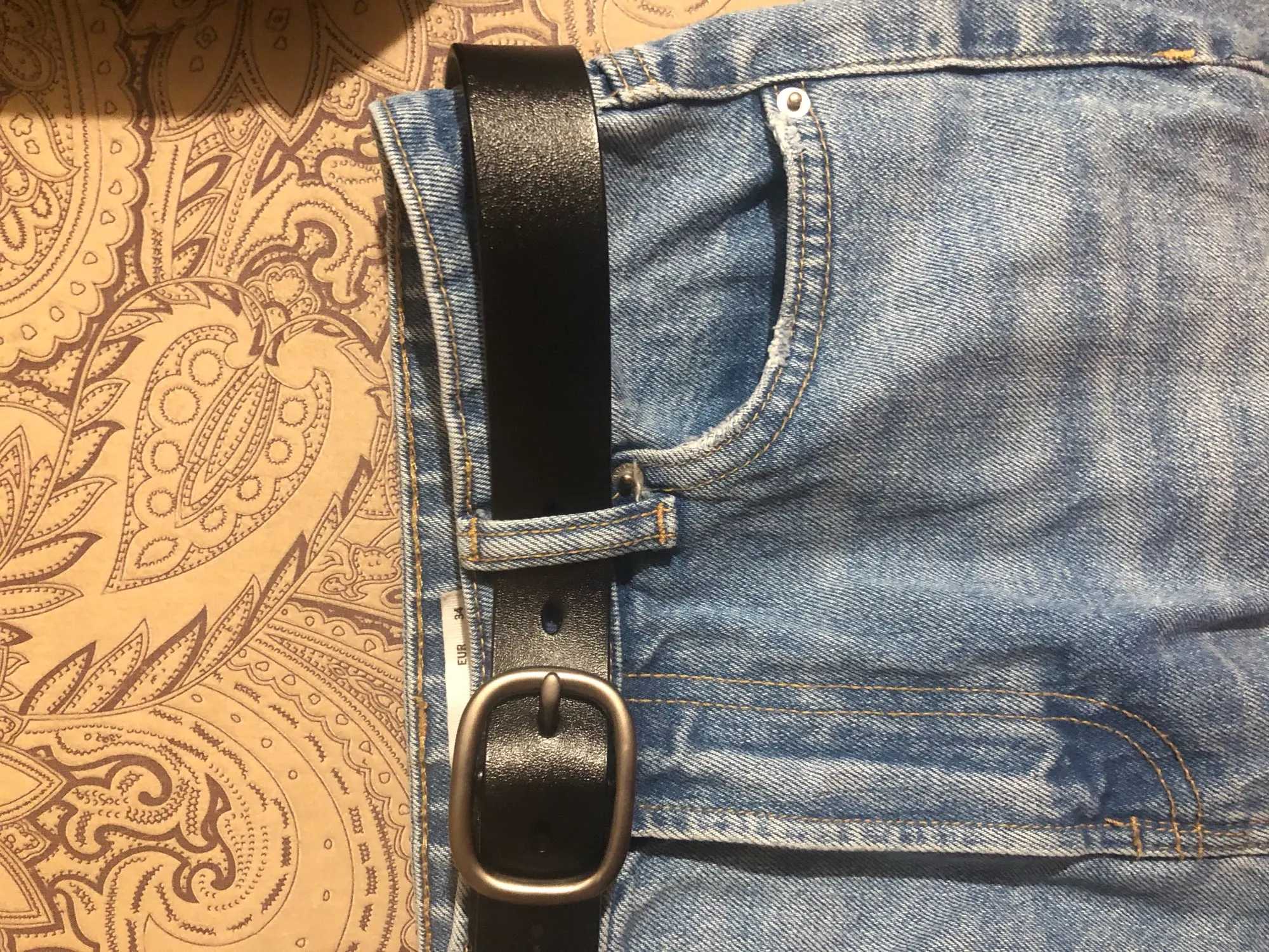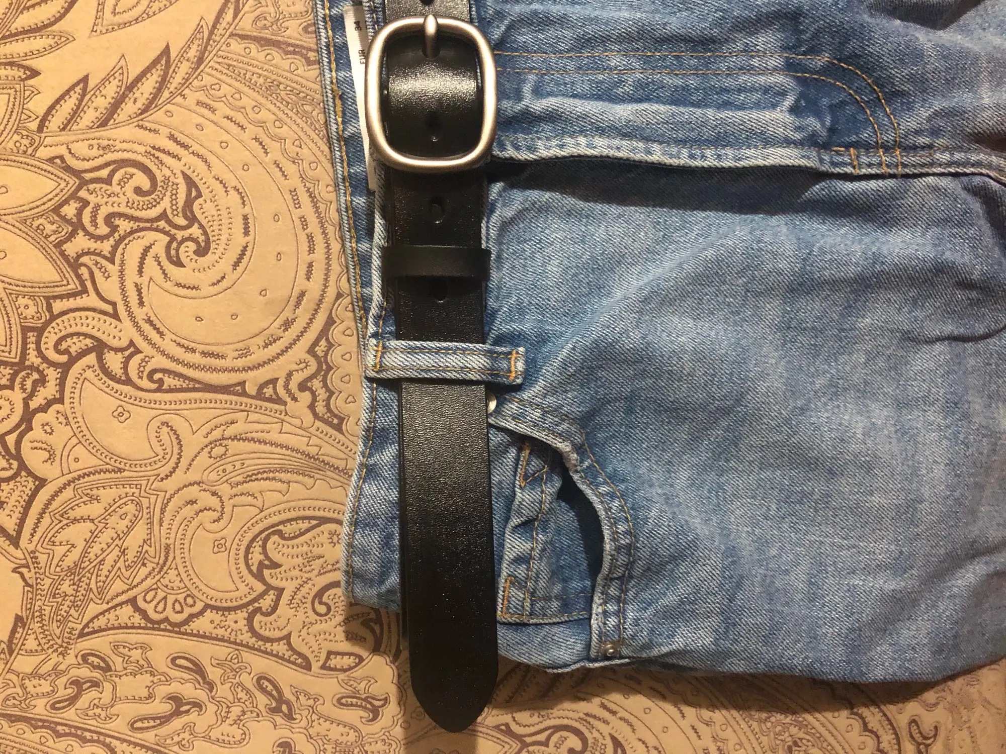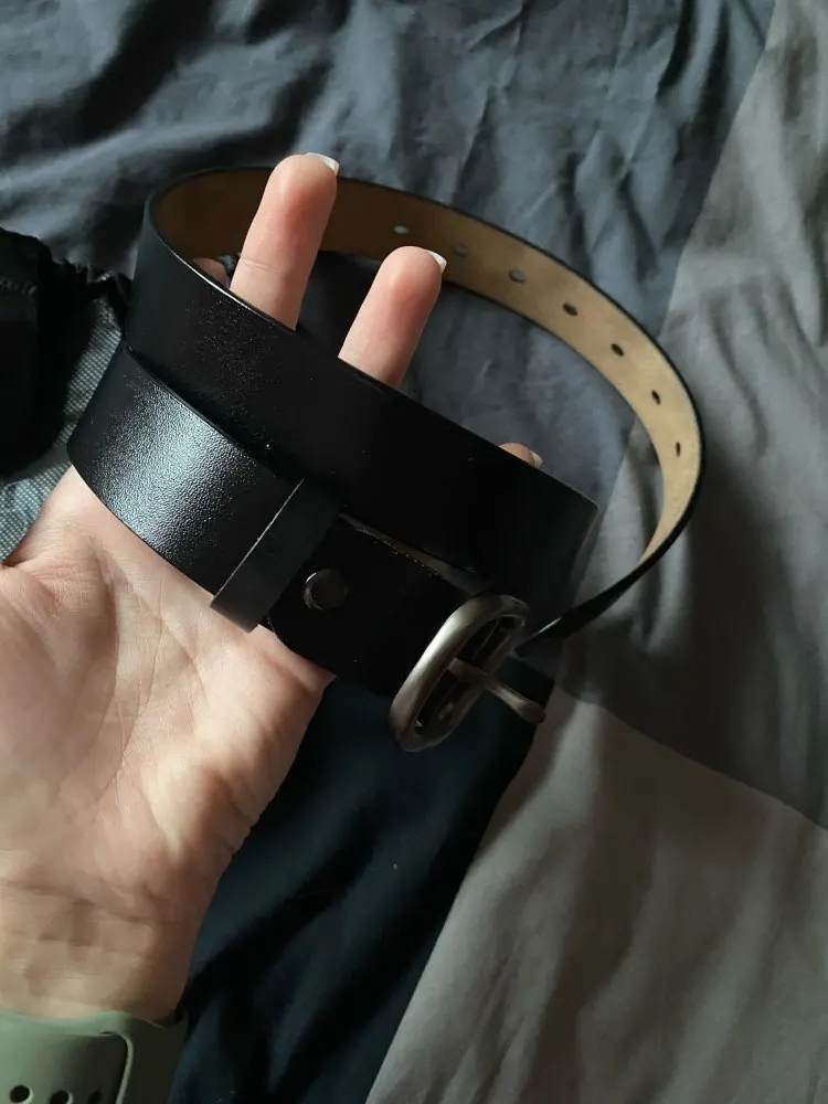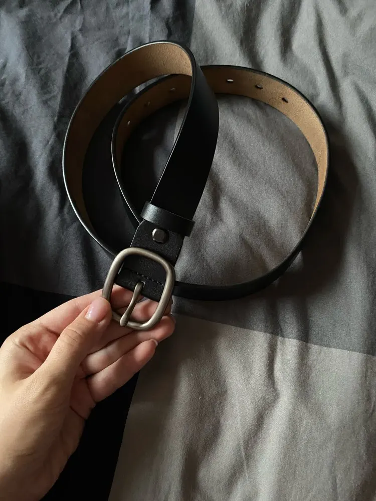 Ремень хороший. Не уверена, что натуральная кожа, но выглядит прилично, ничего не торчит. Не слишком широкий, пряжка матовая. Определённо стоит своих денег.