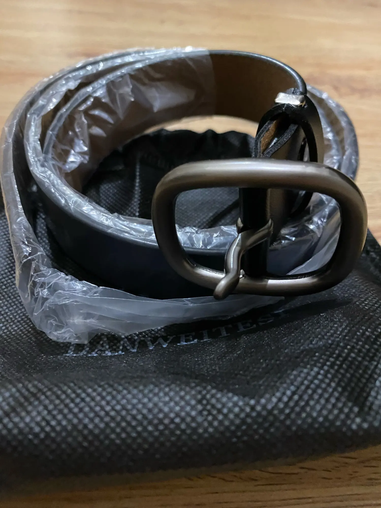 Хороший ремень, пришел быстро, в мешочке. Есть неприятный запах, надеюсь выветриться. Качественная пряжка. Стоит своих денег.