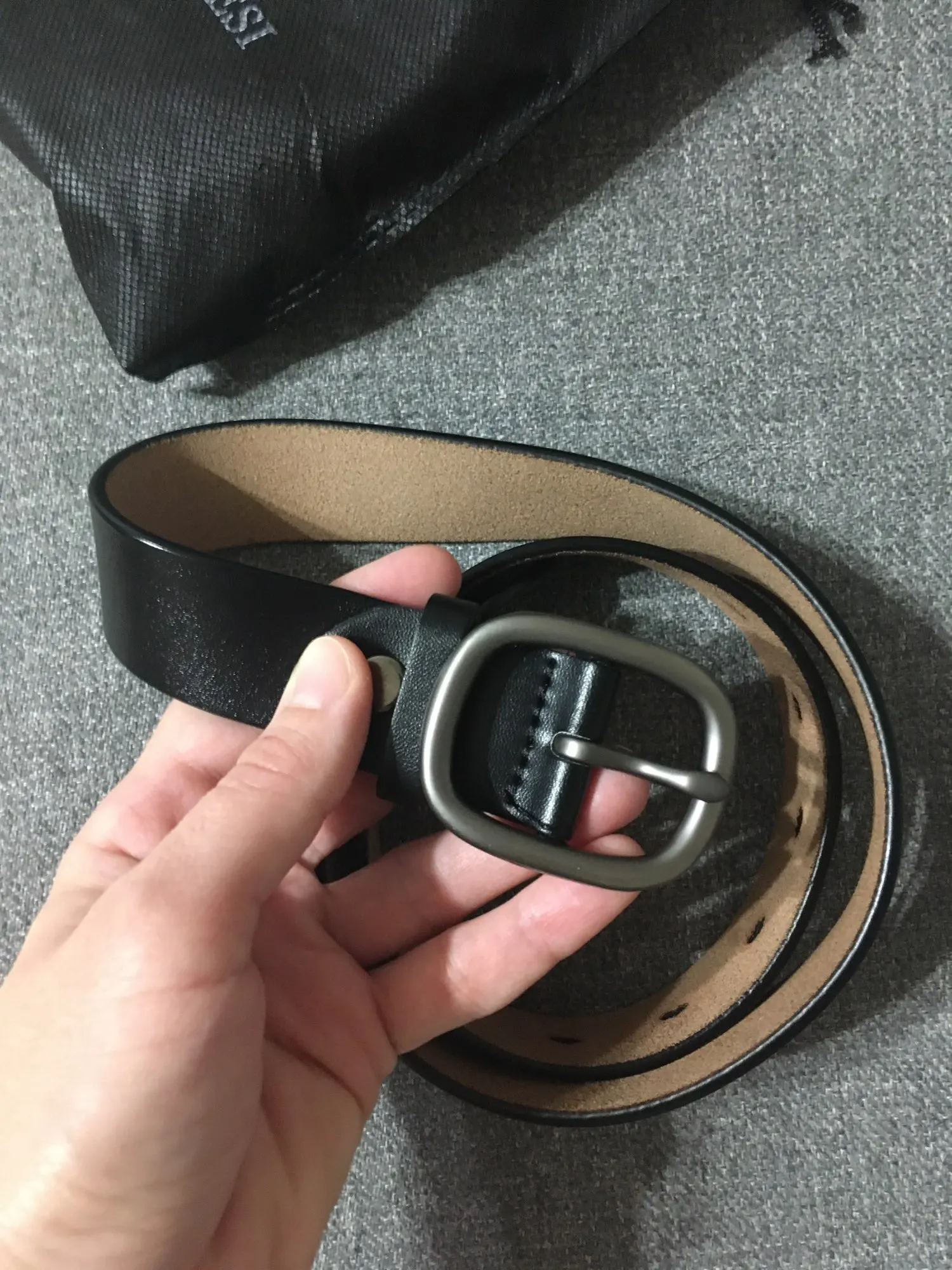 Ремень выглядит хорошо. Пришёл в фирменном мешочке. Насколько действительно это кожа, сложный вопрос. При подрезании подожгла обрезанную часть. Никакого химического запаха не было. В любом случае заказом довольна, ремень выглядит достаточно крепким.