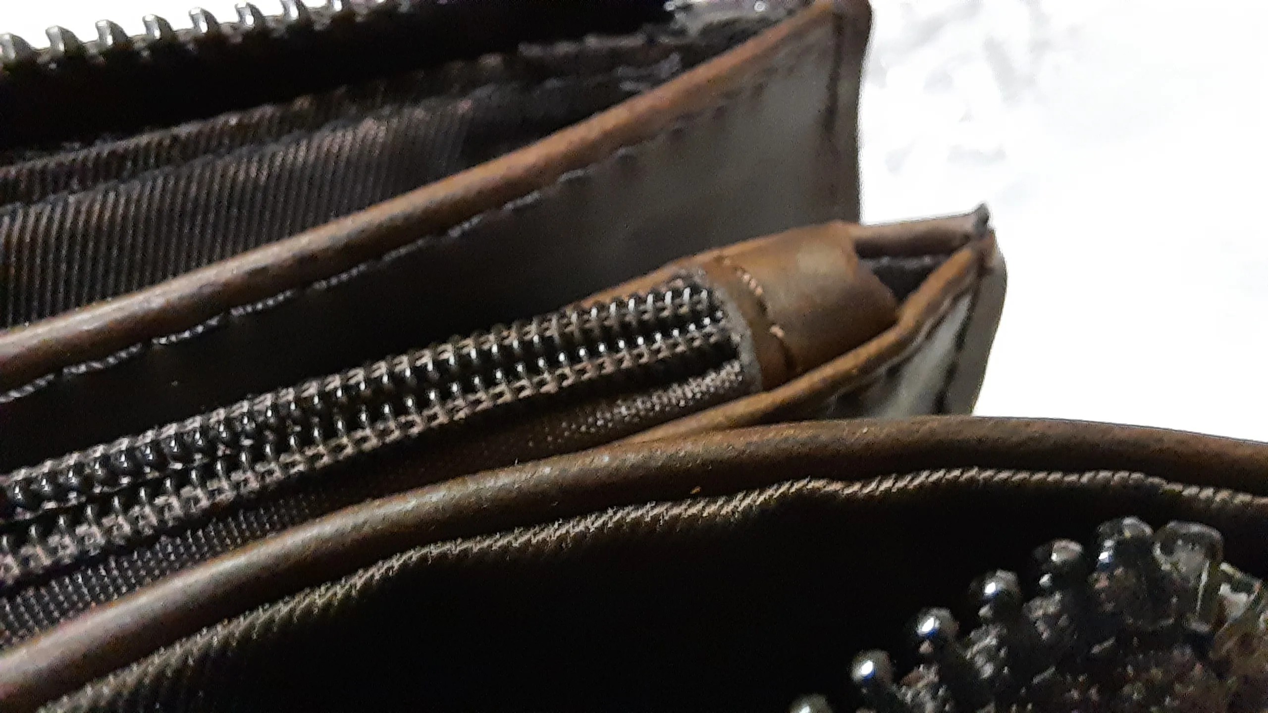 Кошелек качественный, пошит неплохо. Довольно вместительный и смотрится не громоздко. По поводу материала, не уверен что это 100% натуральная кожа, не специалист. Но что-то очень рядом, материал достойный. Мне нравится. Что не очень понравилось - это то, что ремешок крепится к собачке молнии. Не очень надежно, как по мне. Но это решаемо, переделаю. В любом случае - рекомендую тем, кто думает покупать.