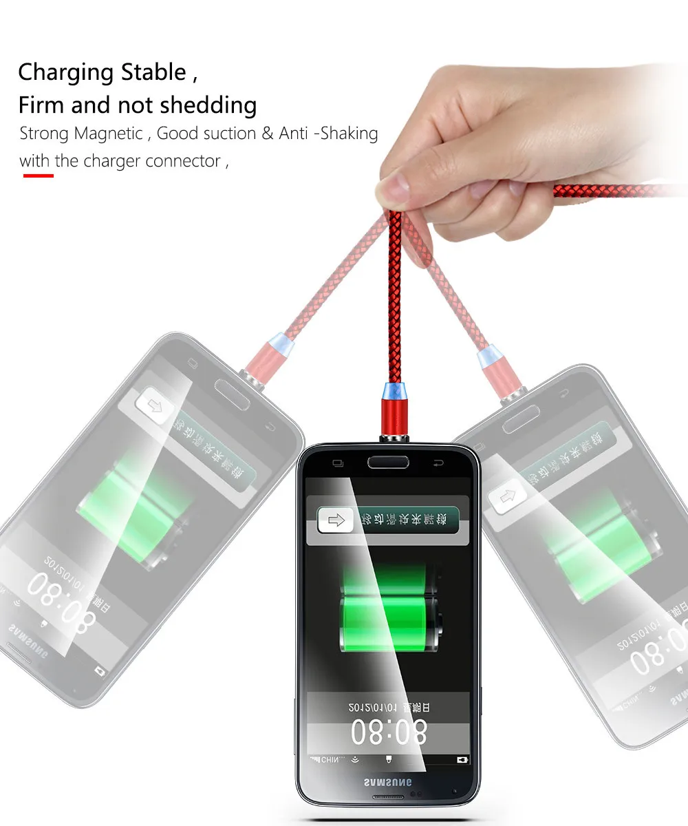 Магнитный светодиодный кабель Type-C Micro USB, Магнитный зарядный ...