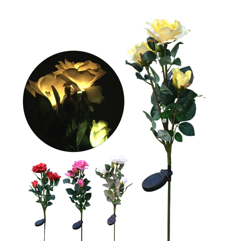 Уличный светодиодный светильник на солнечной батарее, водонепроницаемый светильник в виде розы, простой в установке, для украшения дома, сада, лужайки, дорожки