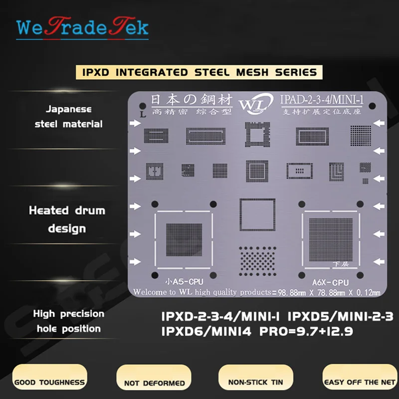 WL BGA набор трафаретов 0,12 мм толщина оловянной сетки припой шаблон для iPad 234 5 6 Air 1 2 Mini 1 2 3 4 Pro
