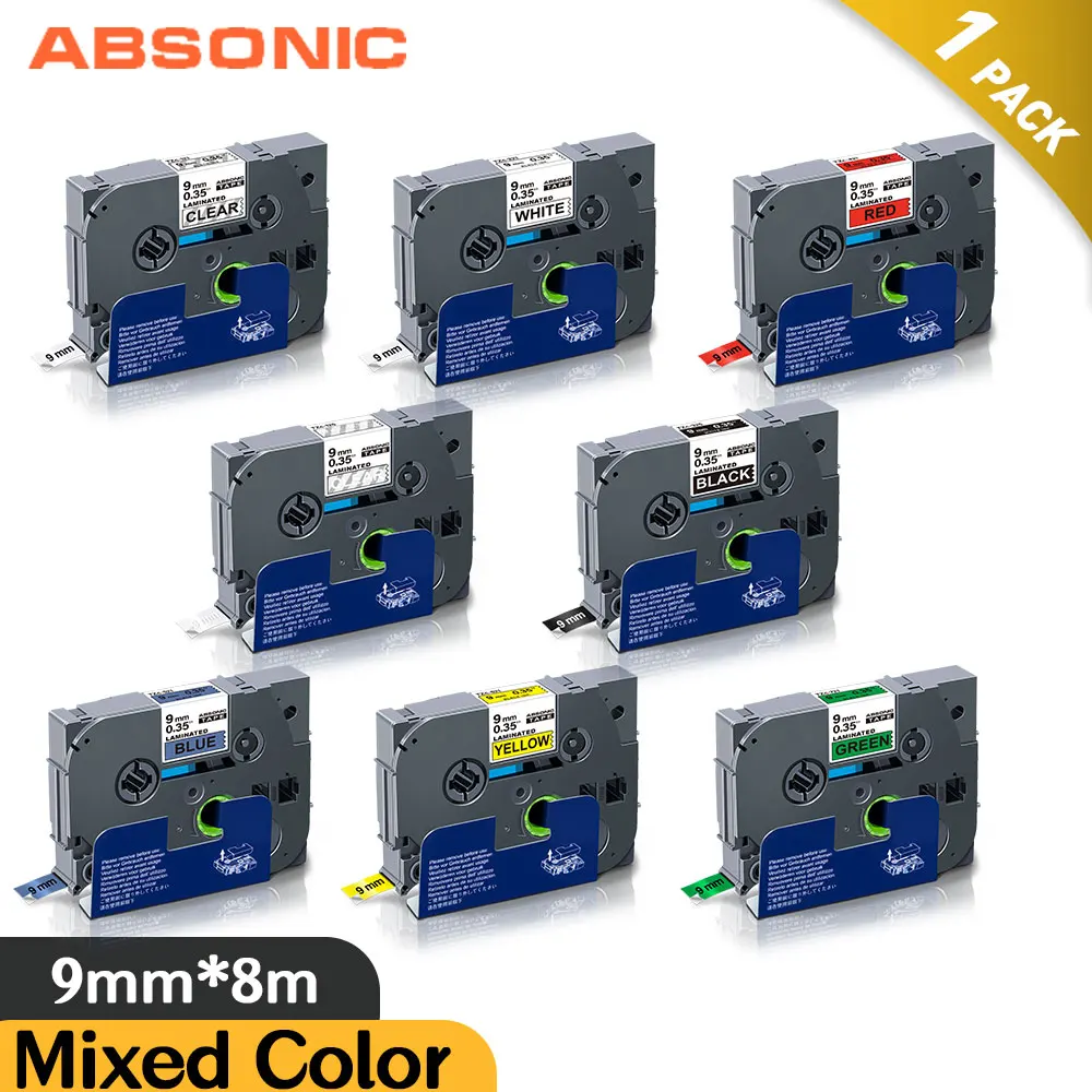 Absonic 9 мм лента для Brother 121 221 421 521 621 721 125 325 ламинированная этикетка лента смешанный Цвет совместимы для Brother чайник