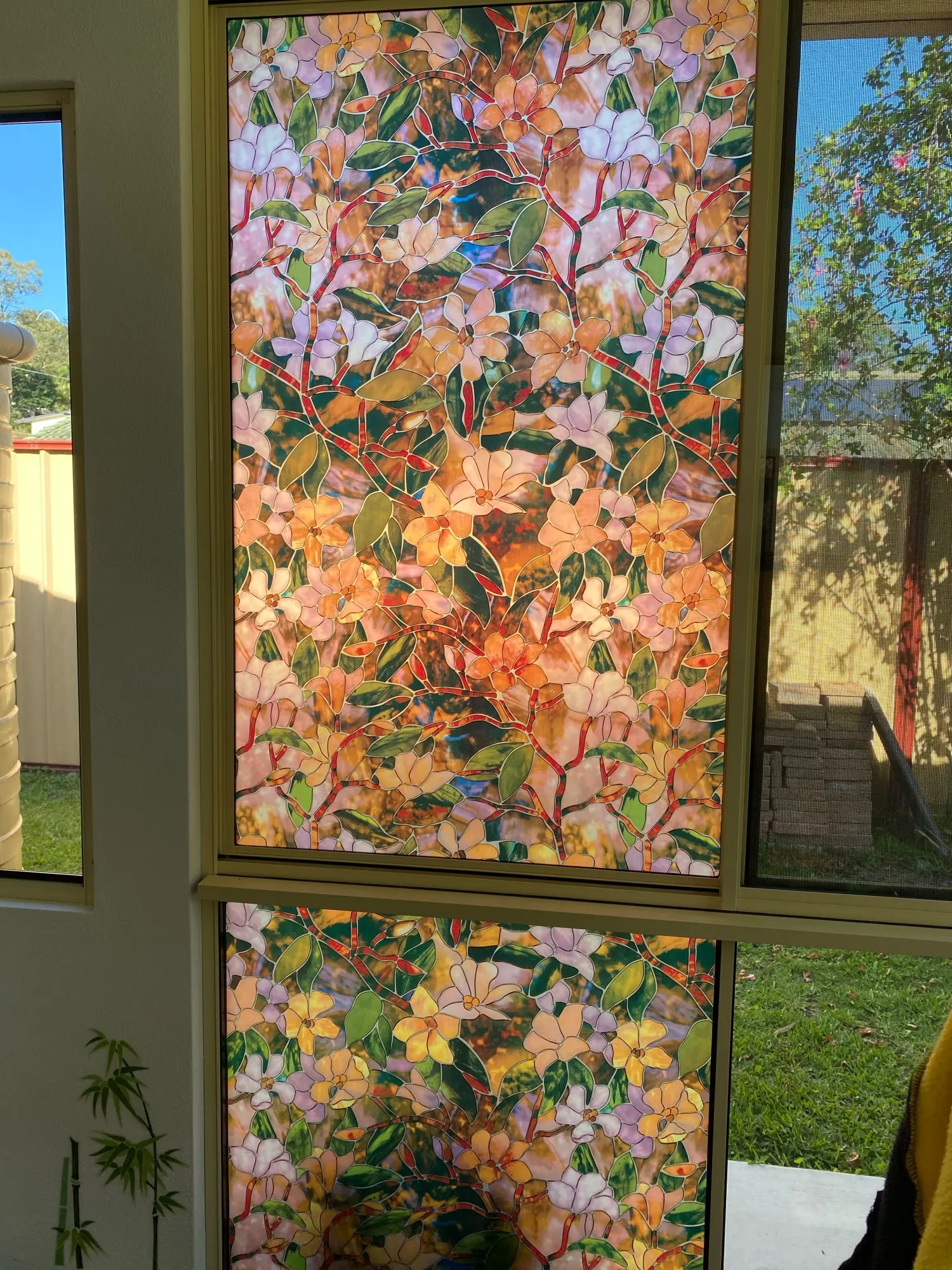 Витражная декоративная оконная пленка непрозрачная статическая нелипкая с узором магнолии 456090 х 200 см