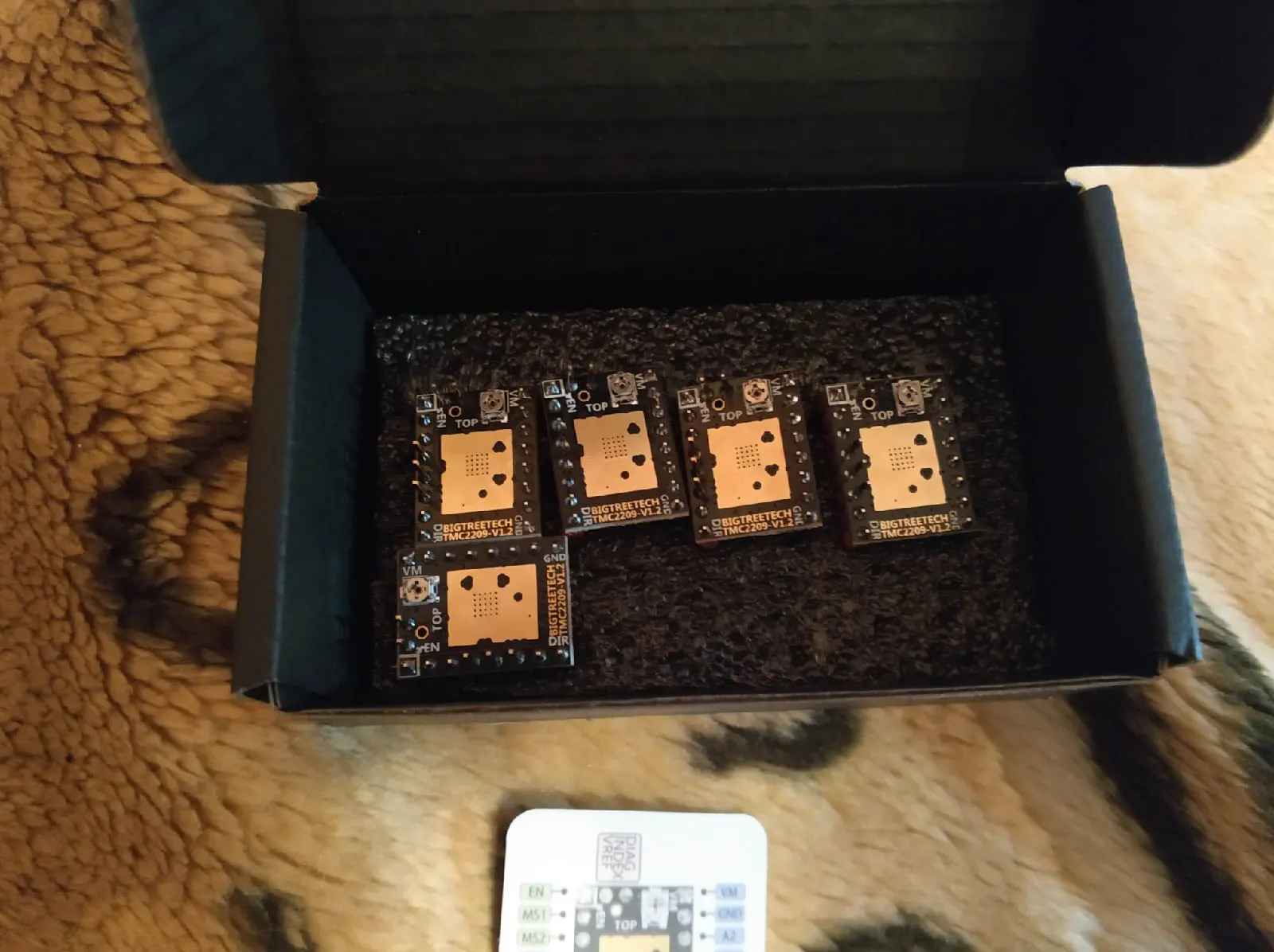 Всё ок, спасибо) цены на подобные драйверы растут, берите пока есть, цена и качество всегда отличные как и упаковка) в сравнении с другими tmc 2208, эти более надёжные. за 2 года работы принтера ни один не вышел из строя! (а twotrees при калибровке сдохло 2 шт пару раз двигатели покрутились и всё)