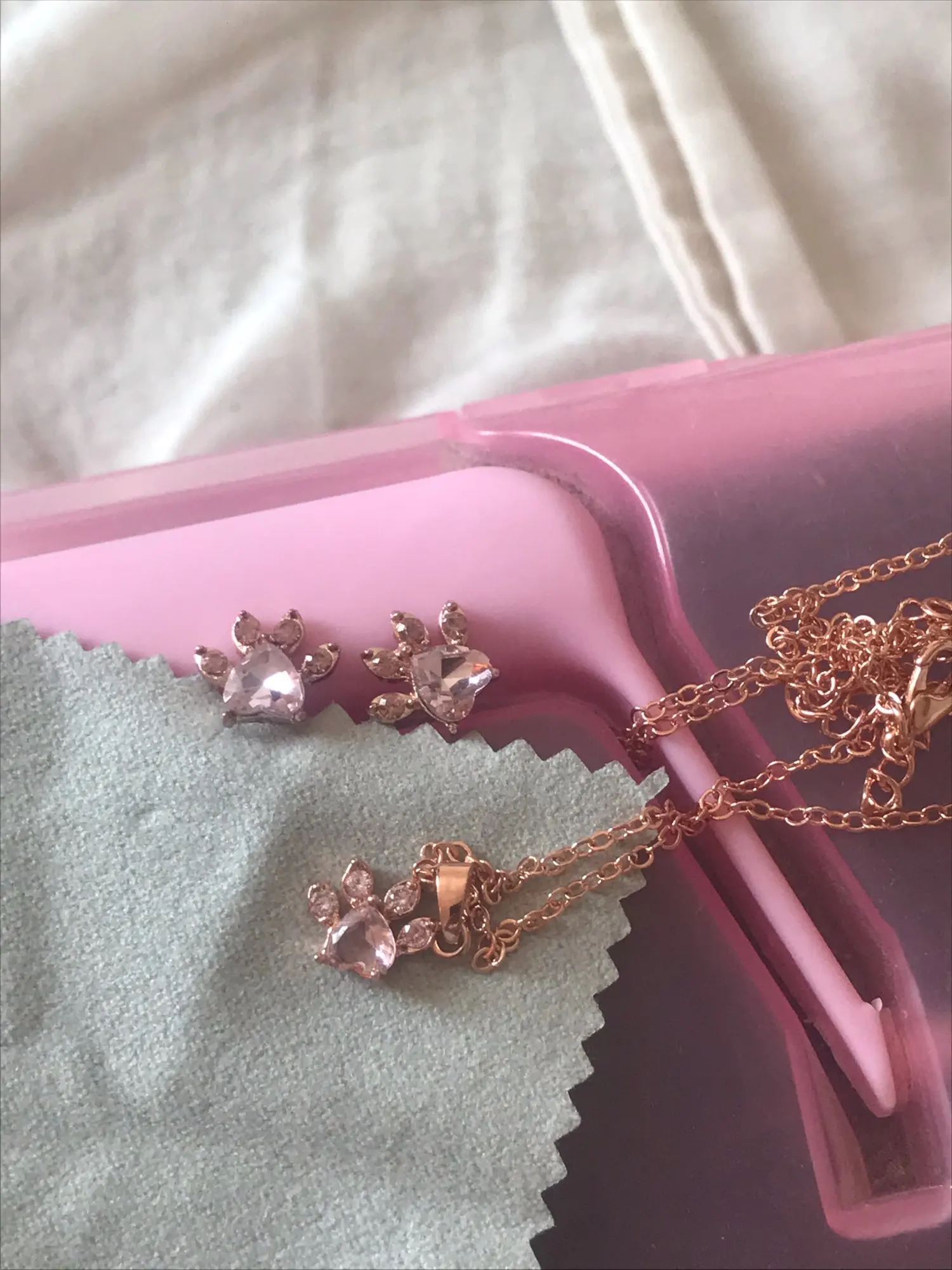Модное милое розовое золото медведь лапа собака коготь розовый ожерелье Блестящий кубический цирконий отпечаток ожерелья для женщин Любовь ювелирные изделия