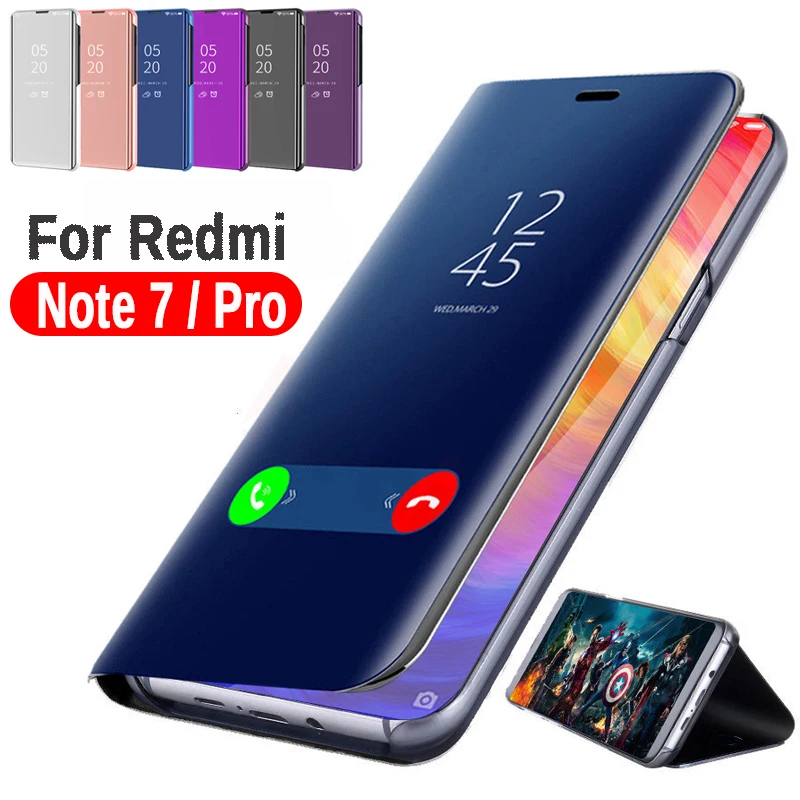 Чехол для Xiaomi Redmi Note 7, чехол, зеркальная поверхность, кожаный чехол для задней панели телефона, красный mi Redmi Note 7 Note7 Pro, ударопрочный