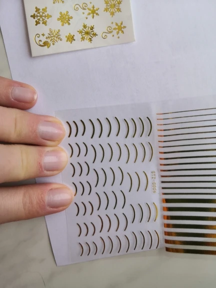 Наклейки вроде неплохие, но не идеальные, в форме лунок слишком большие для мизинчиков точно( ещё и не было в наличии одной позиции, об этом я узнала, когда уже получила посылку, в записочке написали, предложили вернуть деньги. Хочу вернуть, посмотрим как получится....