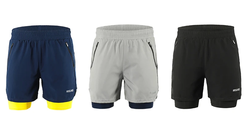 Мужские шорты для бега ARSUXEO, 2 в 1, быстросохнущие дышащие шорты для тренировок, спортивные шорты с эластичной резинкой на талии