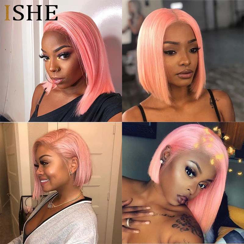Розовый Боб 13x6 большой Синтетические волосы на кружеве человеческих волос парики предварительно 613 розовый прямые короткие боб парики с детскими волосами для черных Для женщин