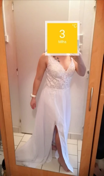Красивое платье. И сделано так чудесно и прочно, каждая деталь, шов, кружево под ним нежнее, как у шмурки, так же как на рукавах под тюлем, поэтому везде не царапается и ничего. Точно соответствует картинке. Трудно немного, как свадебное платье должно быть ^