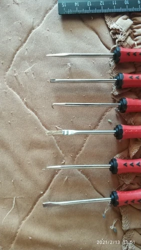 Получил свой заказ. Очень хороший набор. Удобные прорезиненные ручки. Достаточная длина рабочей части. То, что нужно для работы с электроникой. Доволен приобретением. Спасибо большое продавцу! Удачи ему в бизнесе и здоровья!