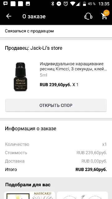 Очень долгая доставка! Даже платная доставка в 250р оказалась долгой. Шло чуть больше месяца. Трек отслеживался. Глаза не щипет, но и держит не долго. Пол дня не прошло, ресницы отпали. Не знаю как люди из отзывов ходят по 2 недели. Обезжиривателем тоже полтзовалась, приклеила. Через мин 30 отвалилось переклеила походила пол дня опять отвалилось.