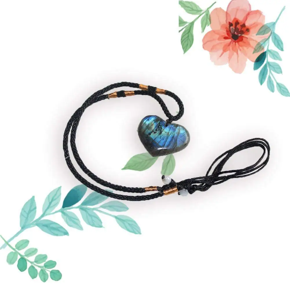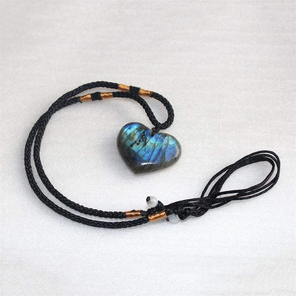 Женское Ожерелье в форме сердца Лабрадорита, длинные ожерелья с подвесками из лунного камня, рождественский подарок