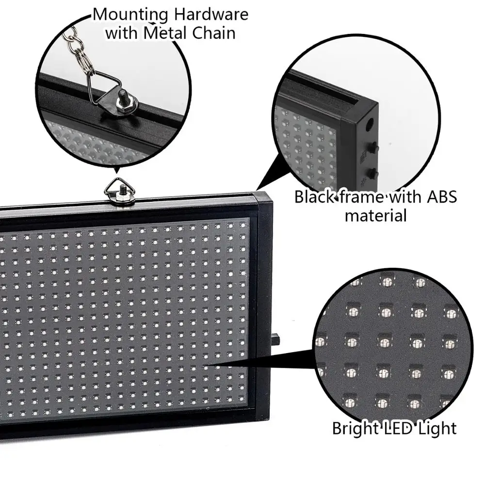 Рамка Размеры: 34*9,6*1,5 см (13,4*3,7*0,5 дюйм (ов)Использование: крытый, полуоткрытыйПиксели: опциональноШаг: 5 ммЦвет дисплея: синий/красный/белый/зеленый/желтый/смешанный текстТолщина: только 1,5 см (ультра-тонкий дизайн)Вход Сигнала: Android и iOS iPhone мобильный телефон с дистанционным входным сообщениемВодонепроницаемый IP уровень: IP54 (уровень жизни водонепроницаемый)