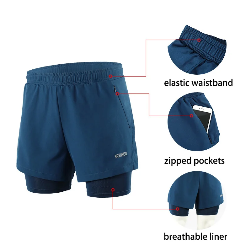 Мужские шорты для бега ARSUXEO, компрессионные шорты 2 в 1 для фитнеса, марафона