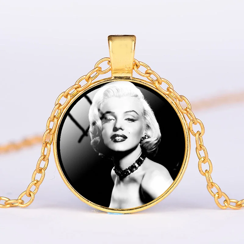 SONGDA ретро звезды Мэрилин ожерелье с изображением Монро черный, Белый Цвет Арт плакат стекло кабошон ожерелье с кулоном ностальгическая коллекция