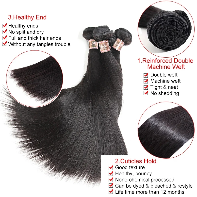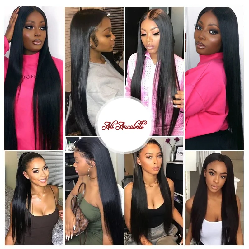 Прямые пучки волос с закрытием HD кружевные малазийские пучки волос с закрытием 4x4 кружевные пучки с пучками волос Ali Annabelle