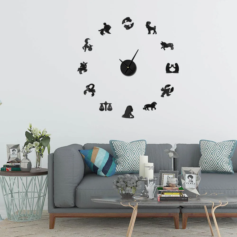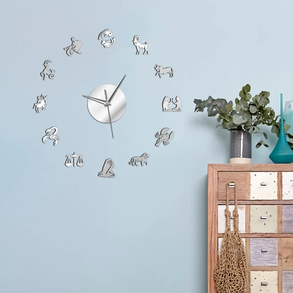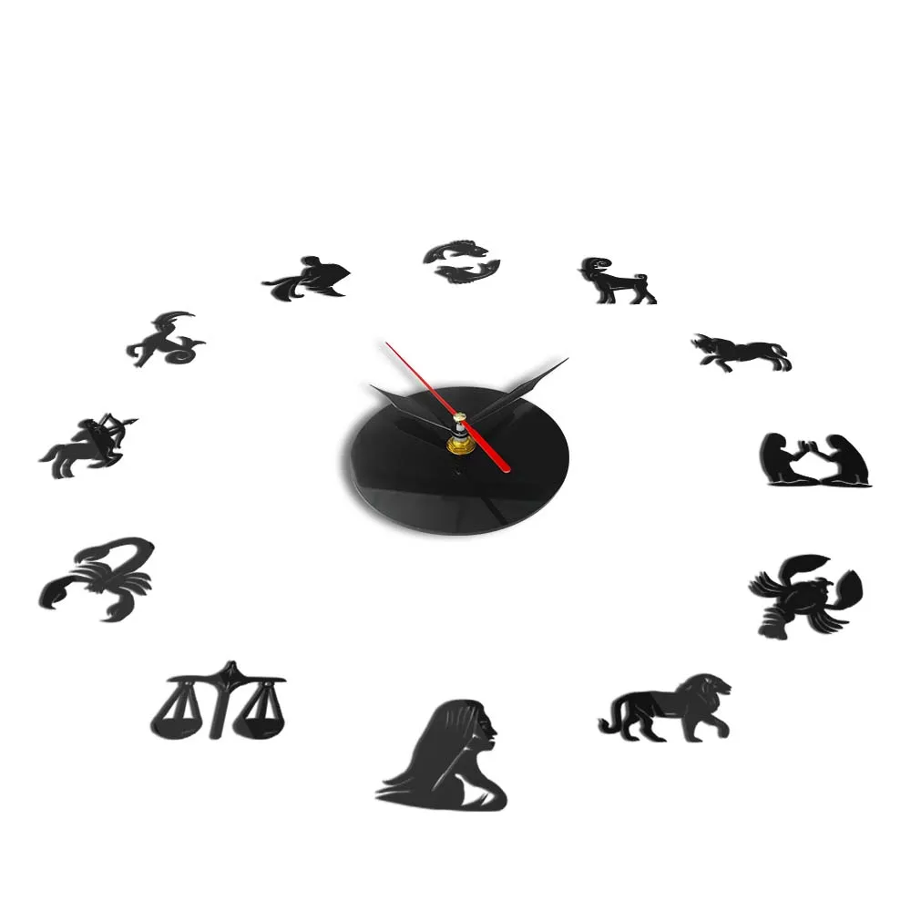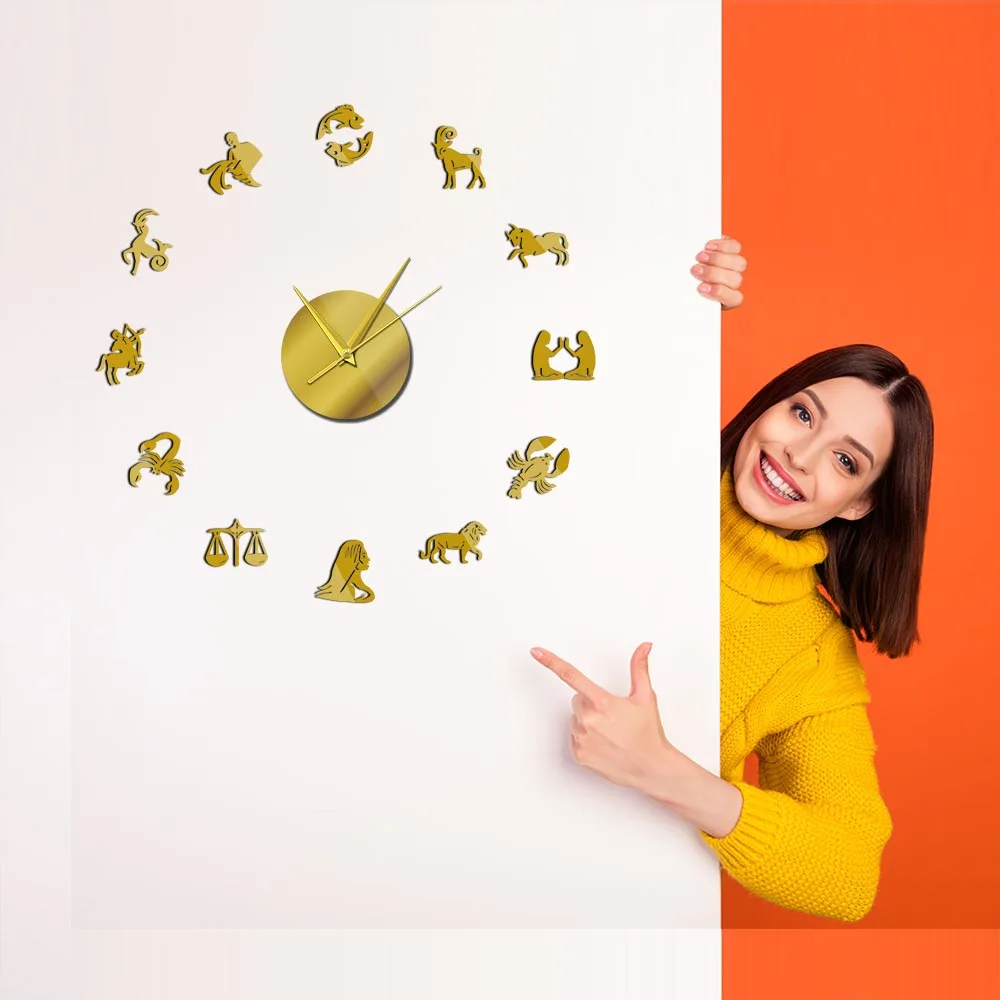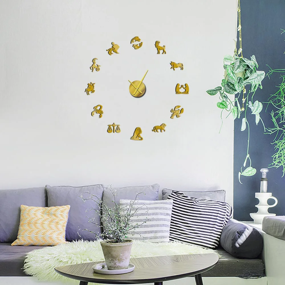 Астрология Современная DIY аналоговая 3D зеркальная поверхность Созвездие Знаки зодиака негабаритные настенные часы Наклейка домашний декор