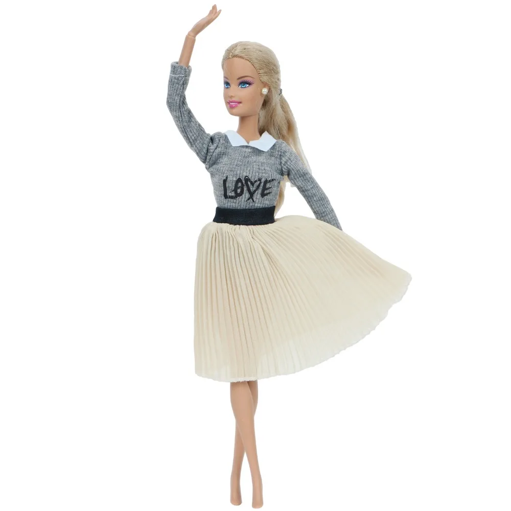 5 предметовупаковка, платья смешанного стиля, наряды для Барби, женская повседневная одежда, топы, брюки, юбка, аксессуары для кукол, игрушки