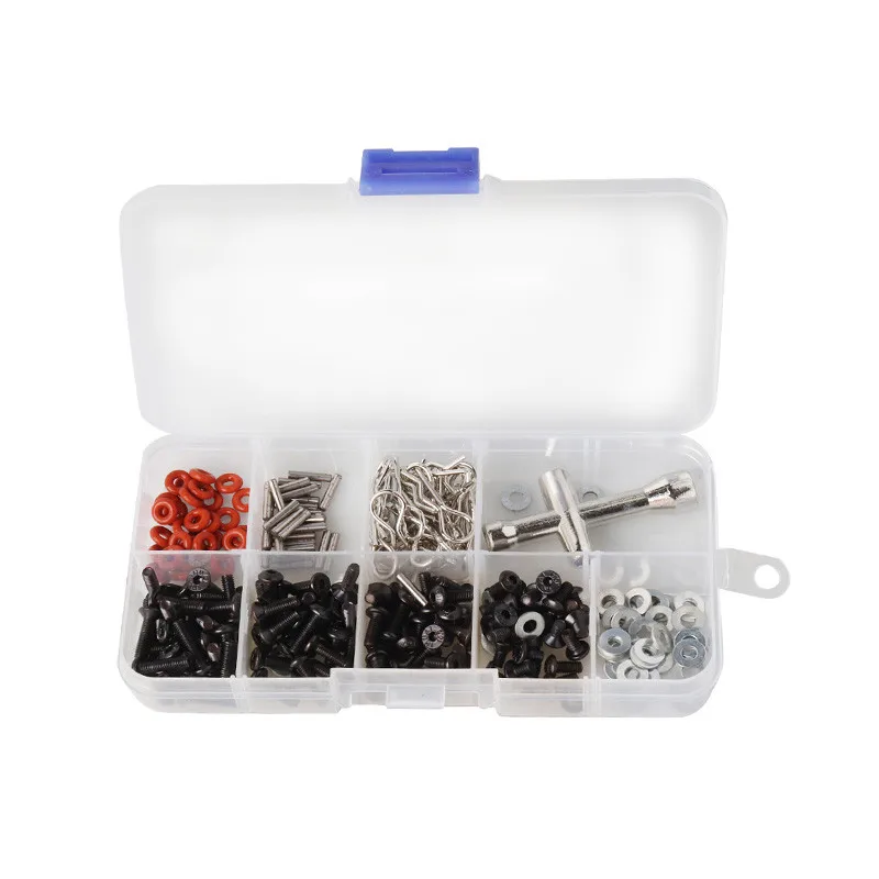 Одна пластиковая коробка, содержащая Сменные винты, зажимы для кузова автомобиля и гайки.