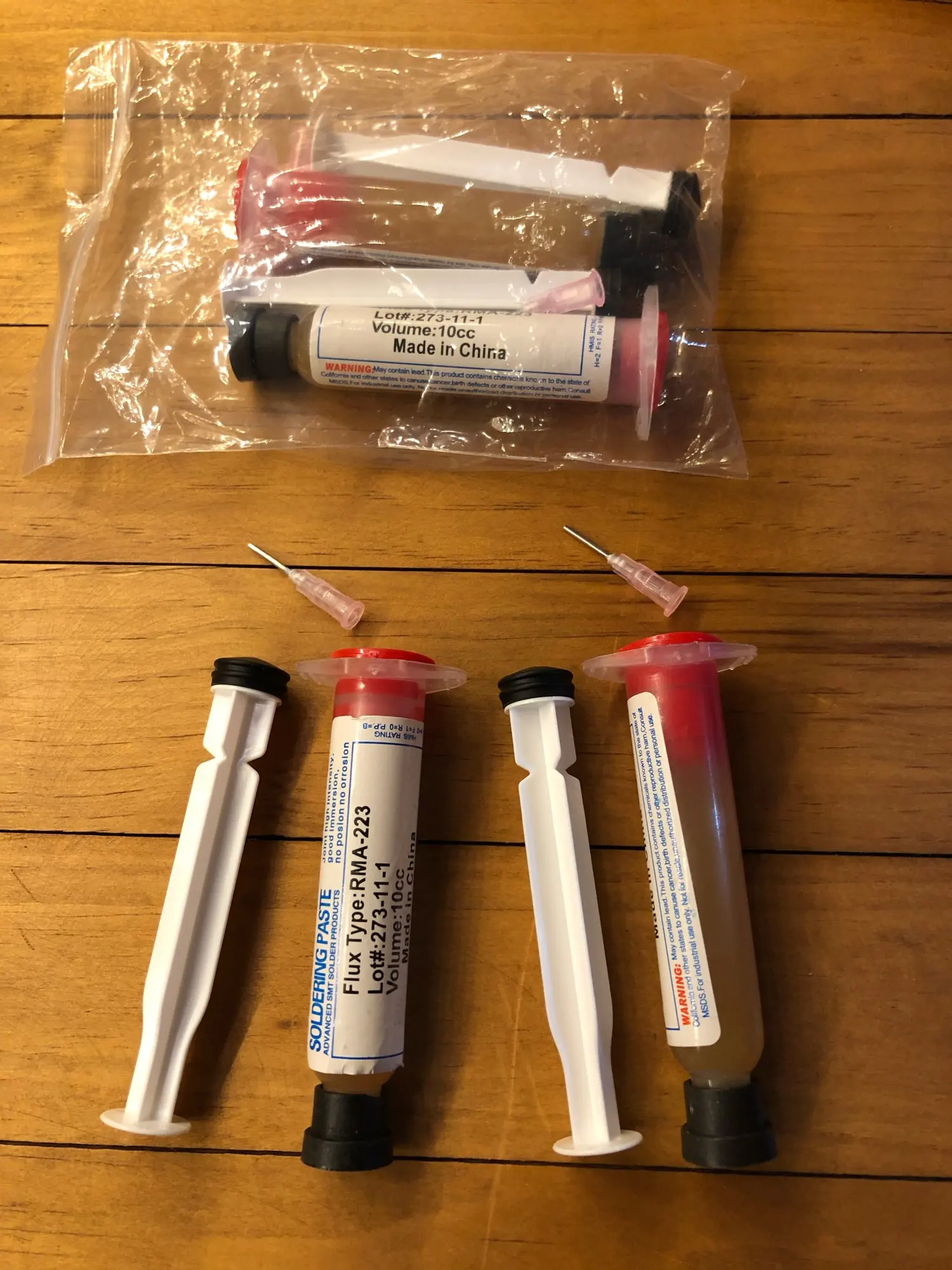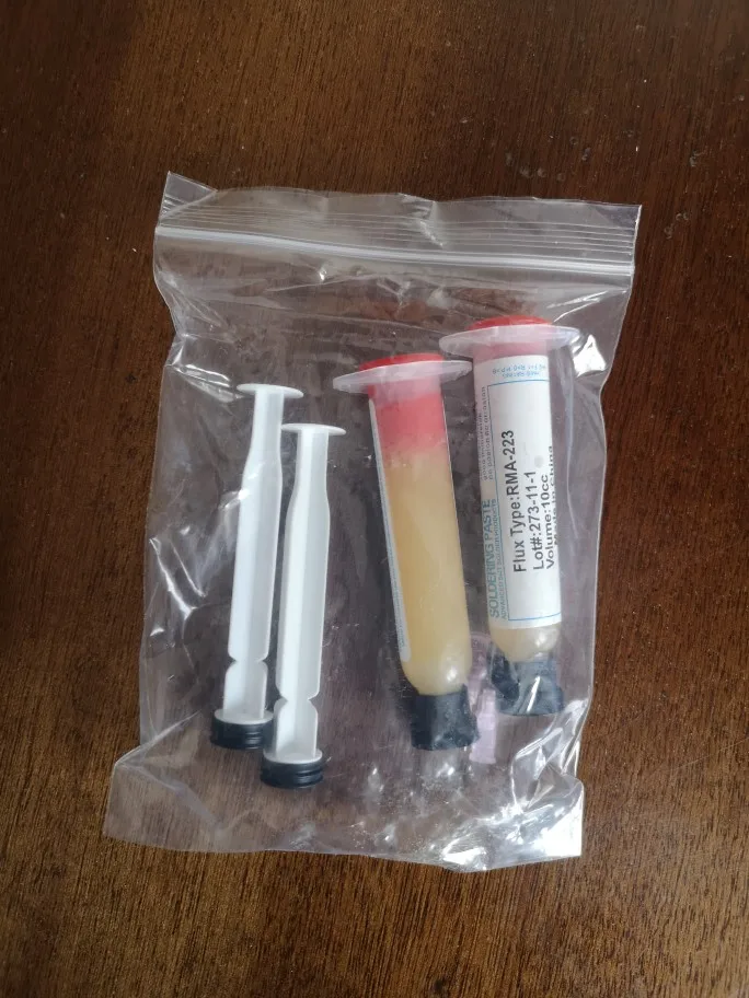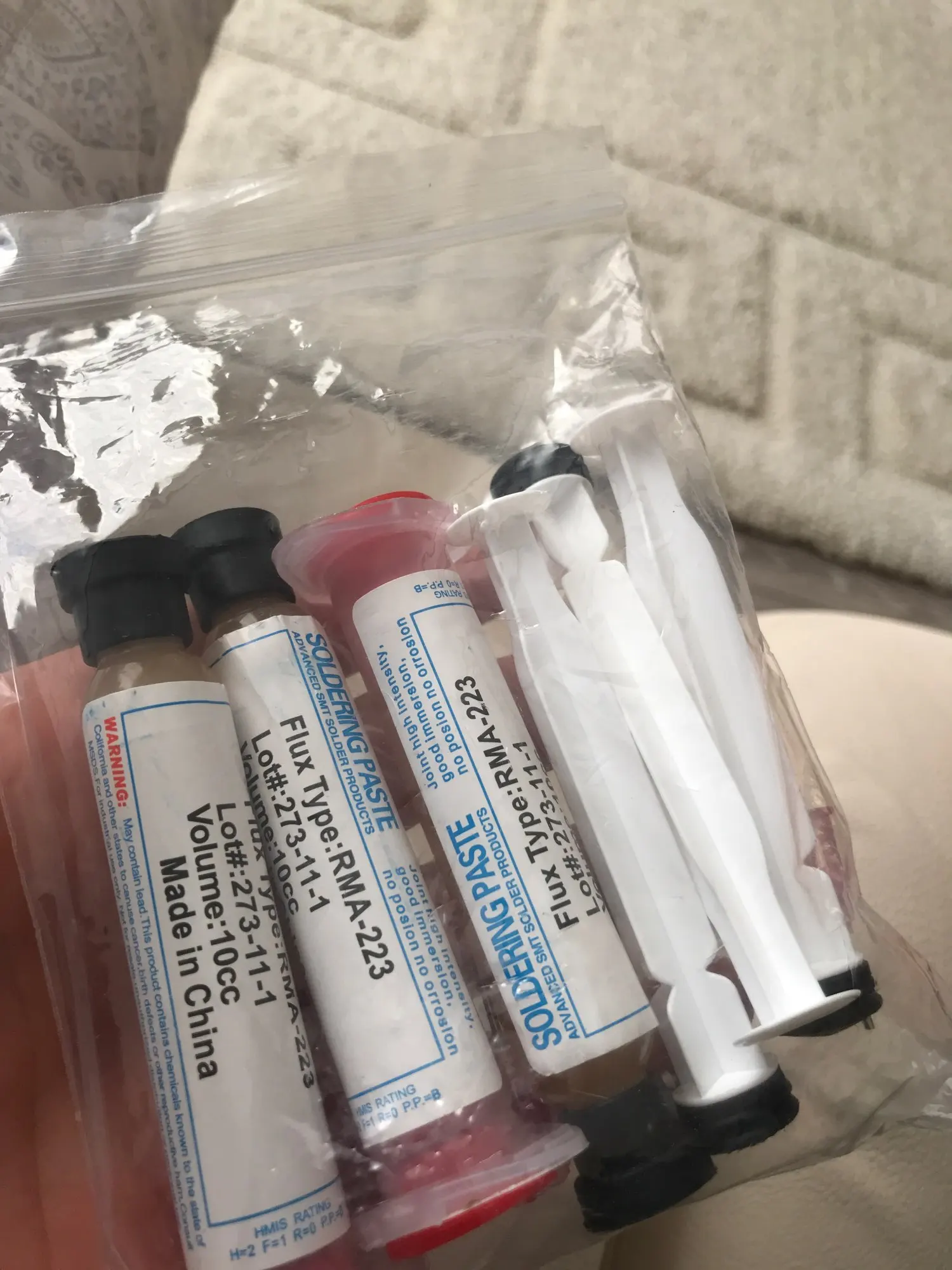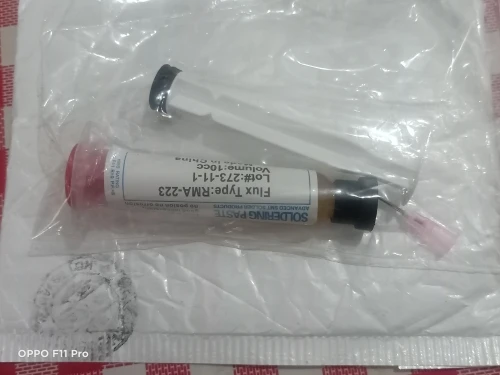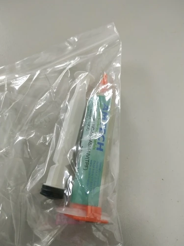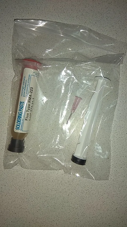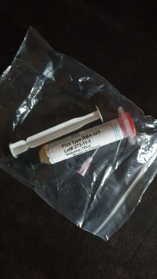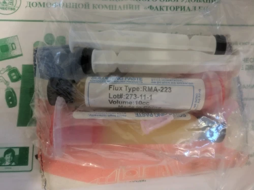 Товар шел долго (возможно, это наша почта постаралась), хорошо упакован. Полный комплект - все как указано, поршень отлично держится в шприце (на другом флюсе не держалось). Запомните, это не флюс плохой, это флюс для SMD. Он не так кипит, как обычный, чтобы элементы не убегали. Но лудит не так, как, например, 559. Довольно дёшево вышло, спасибо продавцу.