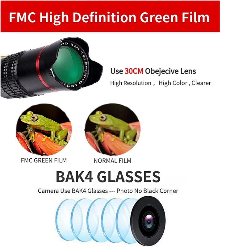 Телеобъектив для мобильного телефона 4K HD, универсальный зум, Монокуляр 15x 22x, телескопическая лупа, телескопическое стекло для цифровой камеры