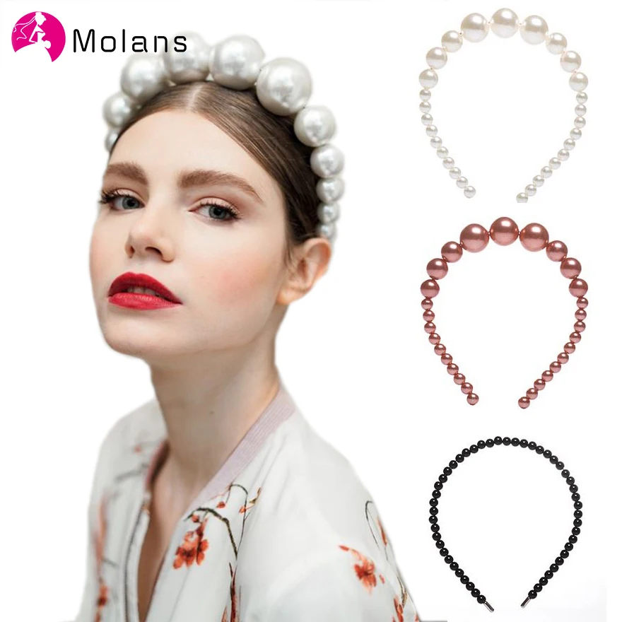 Molan модный однотонный обруч для волос, большая красивая Жемчужная Повязка на голову, разные размеры, жемчужный обруч для волос, аксессуары для волос
