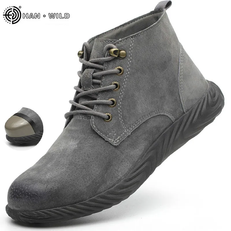 Мужские рабочие ботинки, модные уличные ботинки из коровьей кожи со стальным носком, Нескользящие защитные ботинки с защитой от проколов, 2019