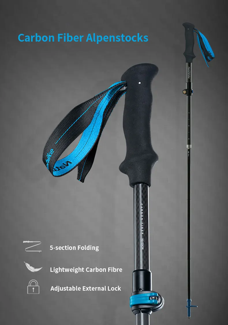 Палка для пешего туризма Naturehike, 5 секций, из углеродного волок...