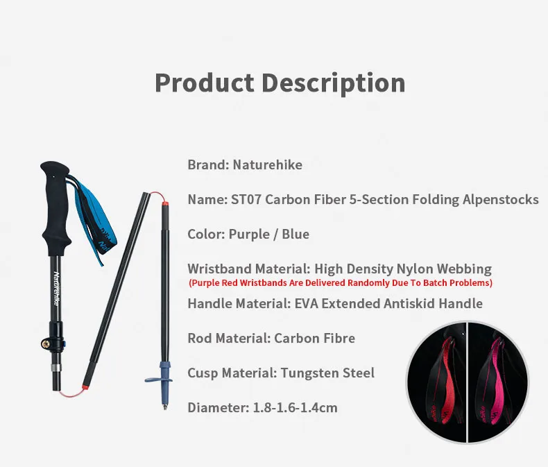 Naturehike углеродное волокно, ультра легкие 5 секций складной регу...