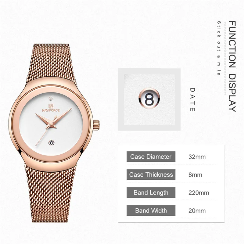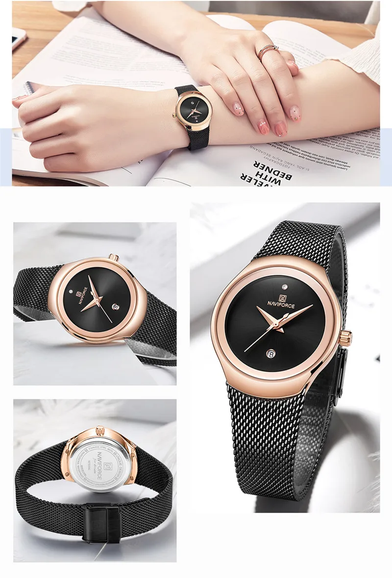 NAVIFORCE женские часы Топ бренд Роскошные женские наручные часы из нержавеющей стали Классический браслет женские часы Relogio Feminino 5004