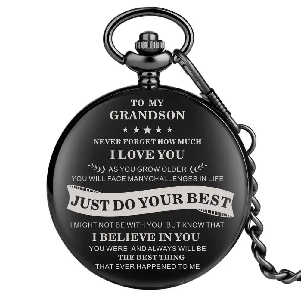 Часы наручные кварцевые моему внуку в античном стиле, карманные ретро-часы с черной подвеской в стиле панк, сувенир, Коллекционные Подарочные, 2019