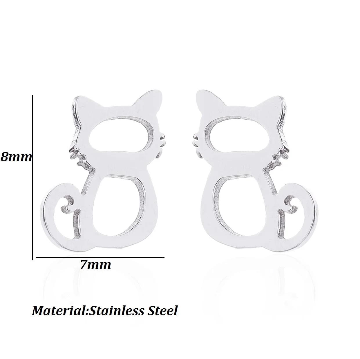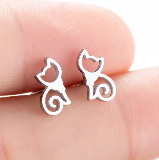 Серьги-гвоздики в виде кошки из нержавеющей стали для женщин и детей