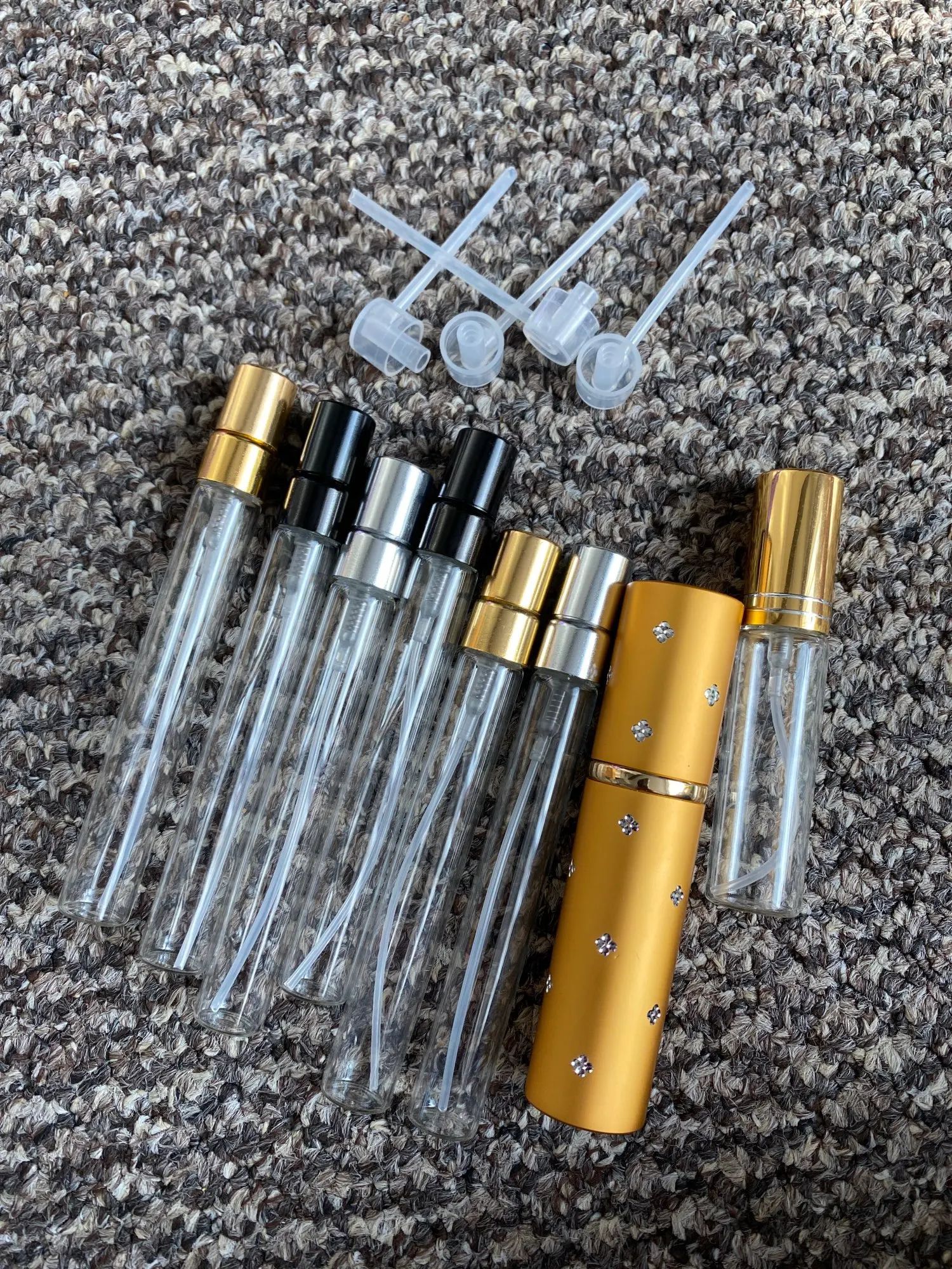 Mini rechargeable Glass Perfume Bottle. Очень практичный и портативный для 10 мл. Просто то, что нужно положить в сумку. Не связывайтесь с продавцом, потому что не было необходимости, и продукт был отправлен примерно через три недели 1 месяц.