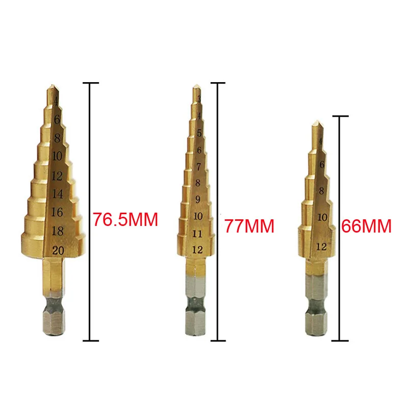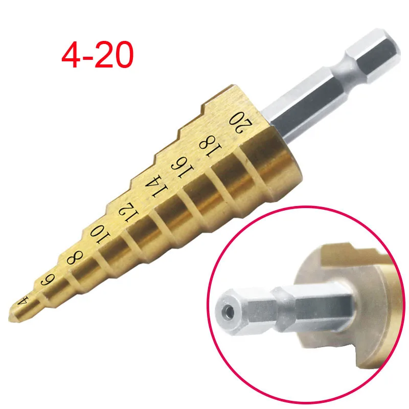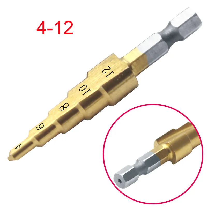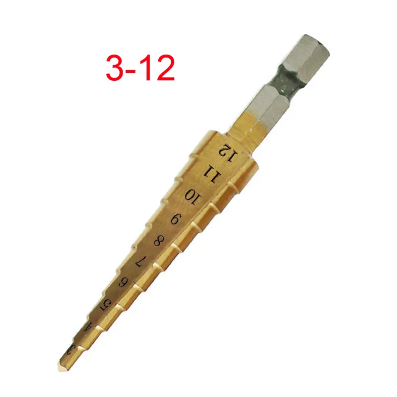 Ступенчатое Коническое сверло 3-12 мм, 4-12 мм, 4-20 мм, резак для отверстий, Dint Tool, шестигранный хвостовик, ступенчатые сверла, хвостовик, металлическое сверло с покрытием